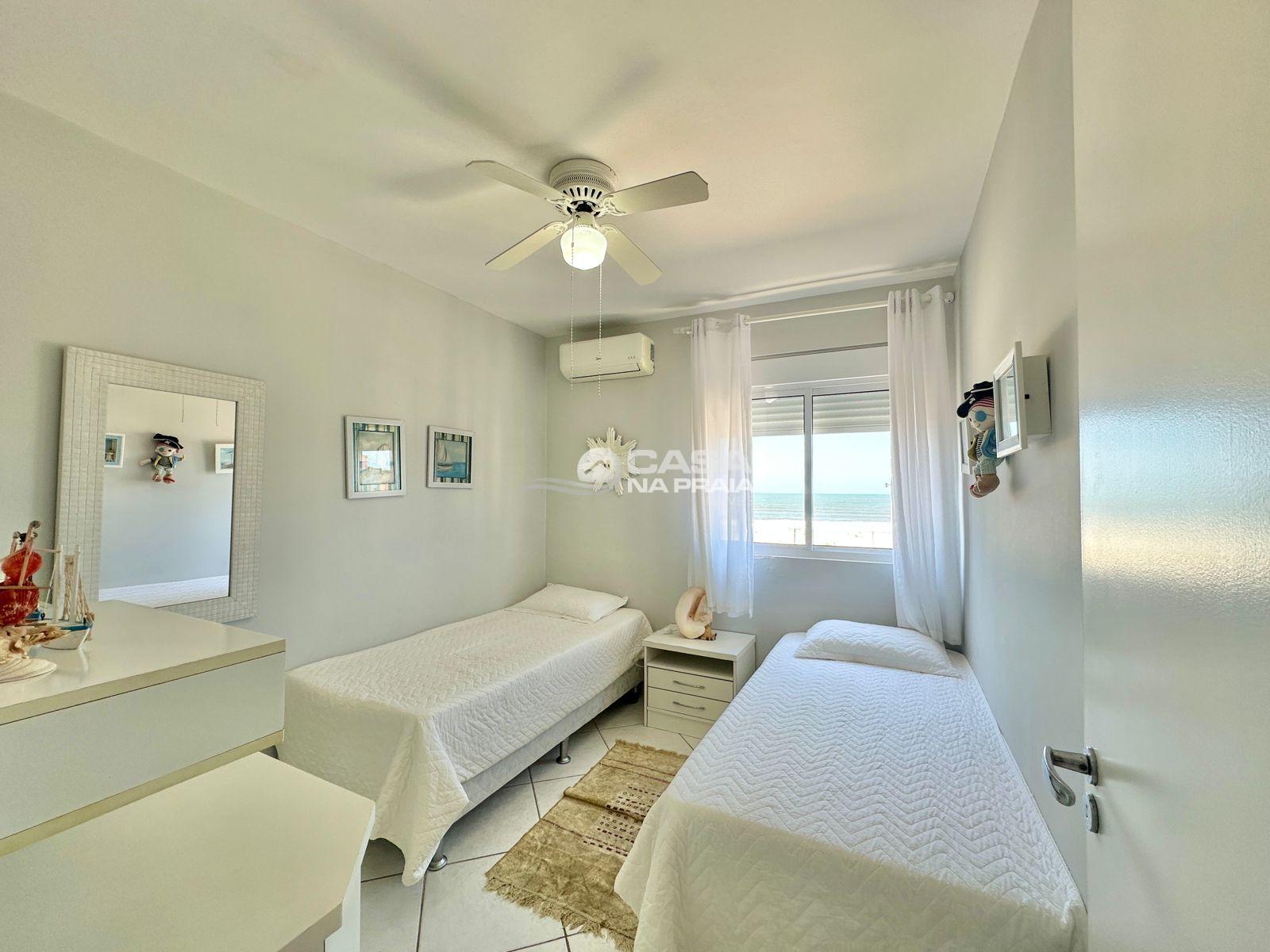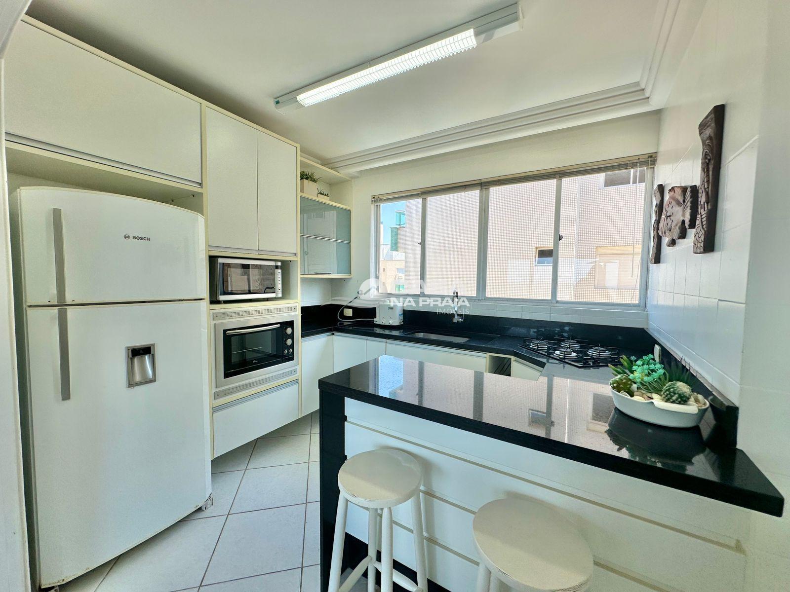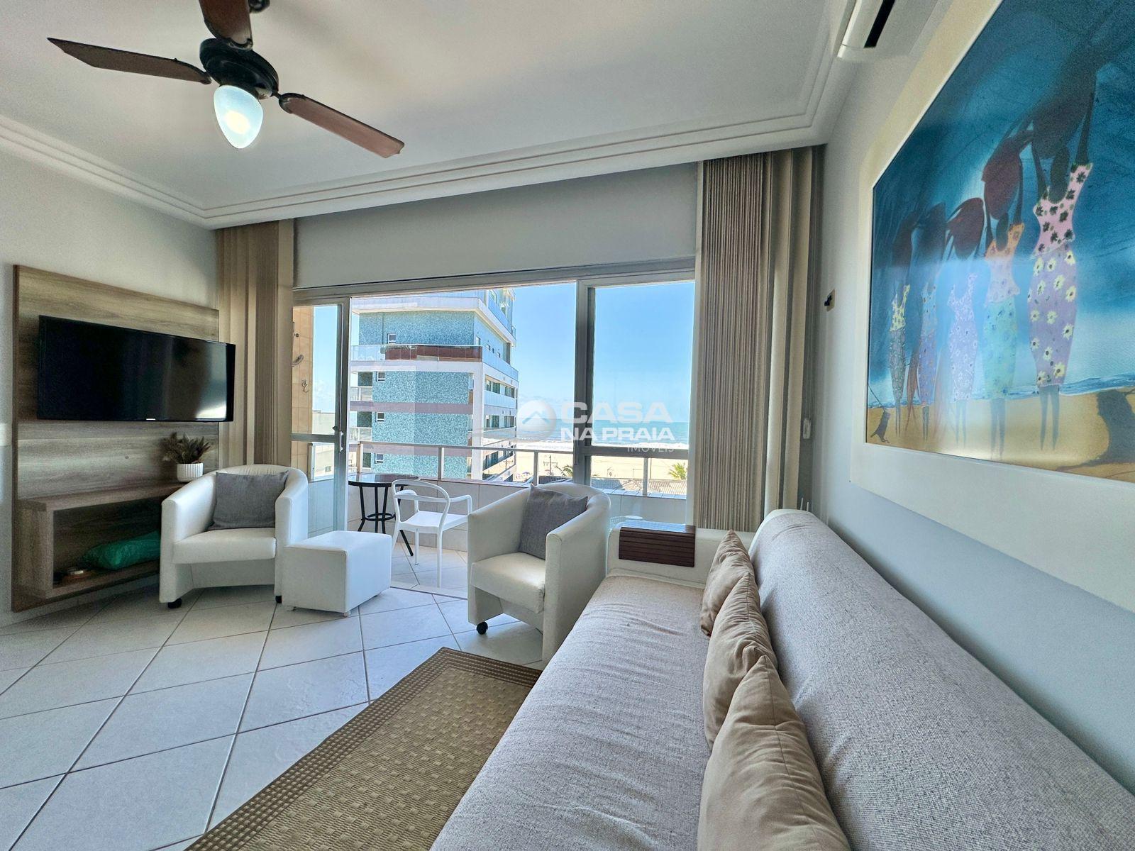 Possui 03 quartos (01 suíte), sala de estar e jantar integradas, sacada com vista para o mar, cozinha equipada, área de serviço e banheiro social. Conta ainda com Wi-Fi e 02 vagas de garagem.