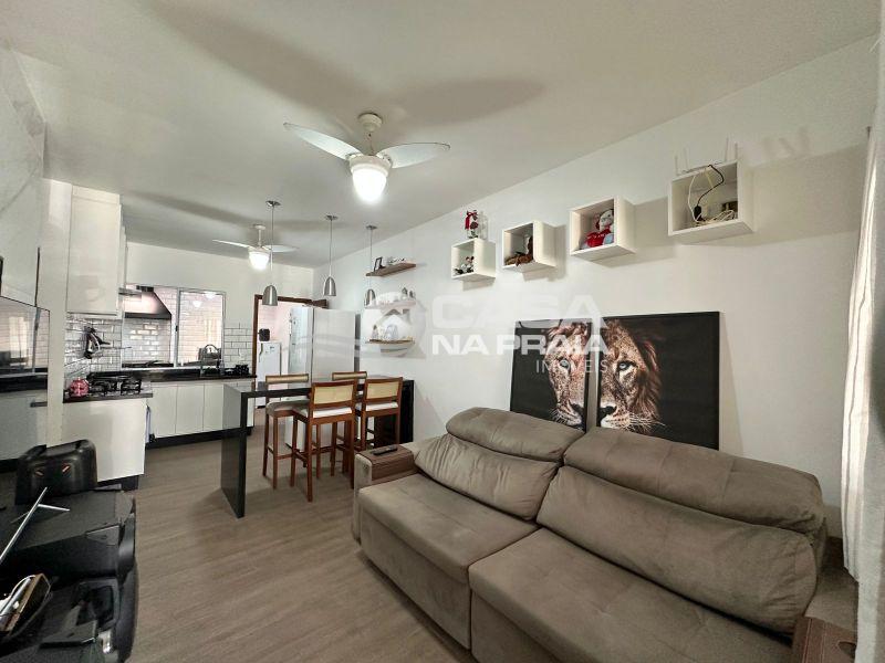 O imóvel conta com 02 quartos, banheiro social, sala de estar e jantar integradas à cozinha sob medida, área de serviço e espaço gourmet fechado. Possui ainda vaga de garagem coberta para 02 carros.