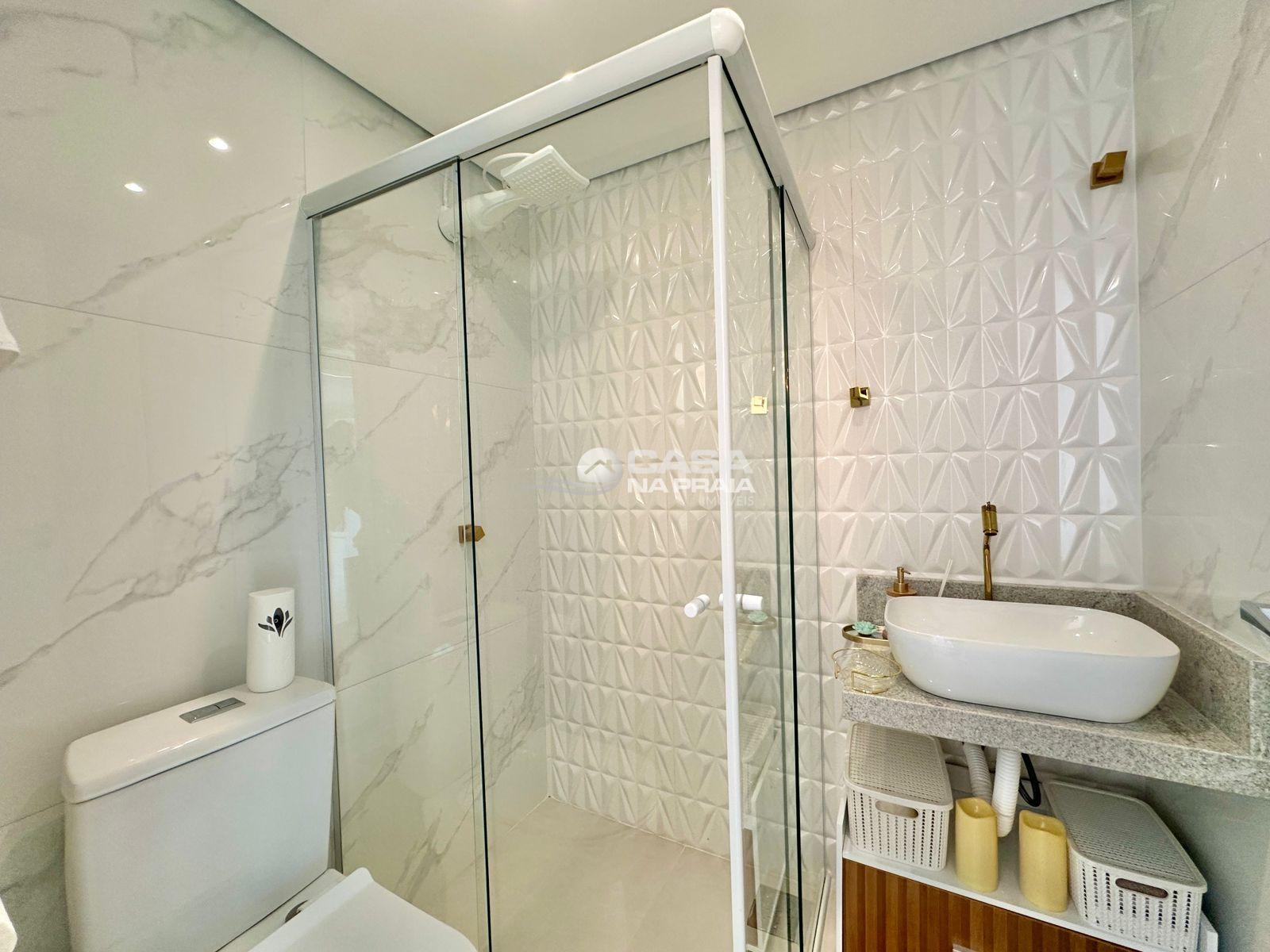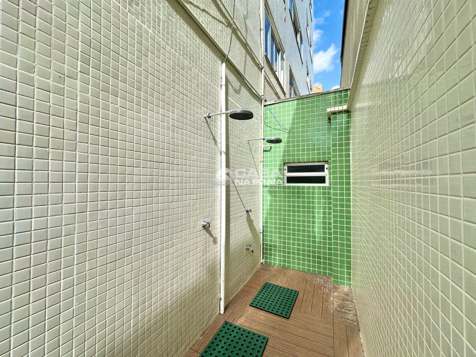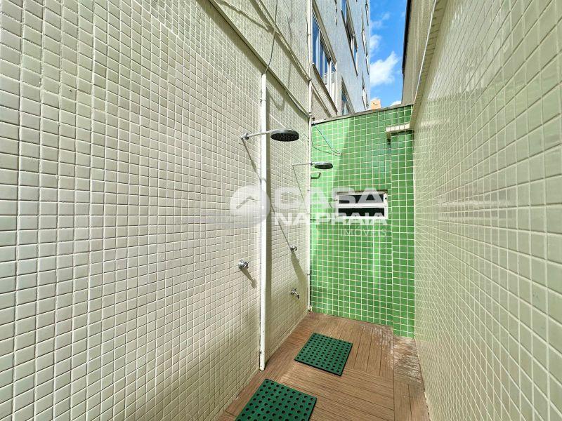 O condomínio oferece hall de entrada, elevador, interfone, zeladoria e chuveiro de praia, garantindo conforto e funcionalidade no dia a dia.