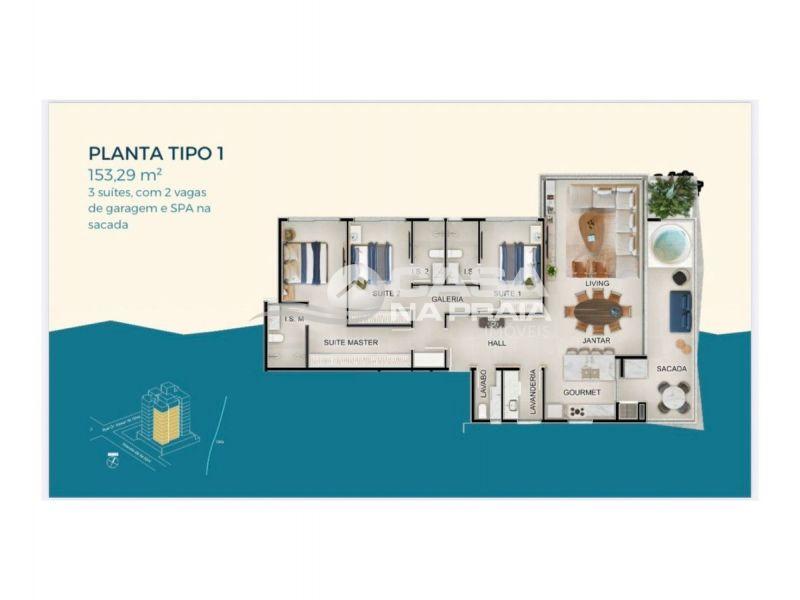 03 suítes (sendo 01 master com closet), 02 vagas de garagem, SPA na sacada e 59,85 m² de área descoberta. -
