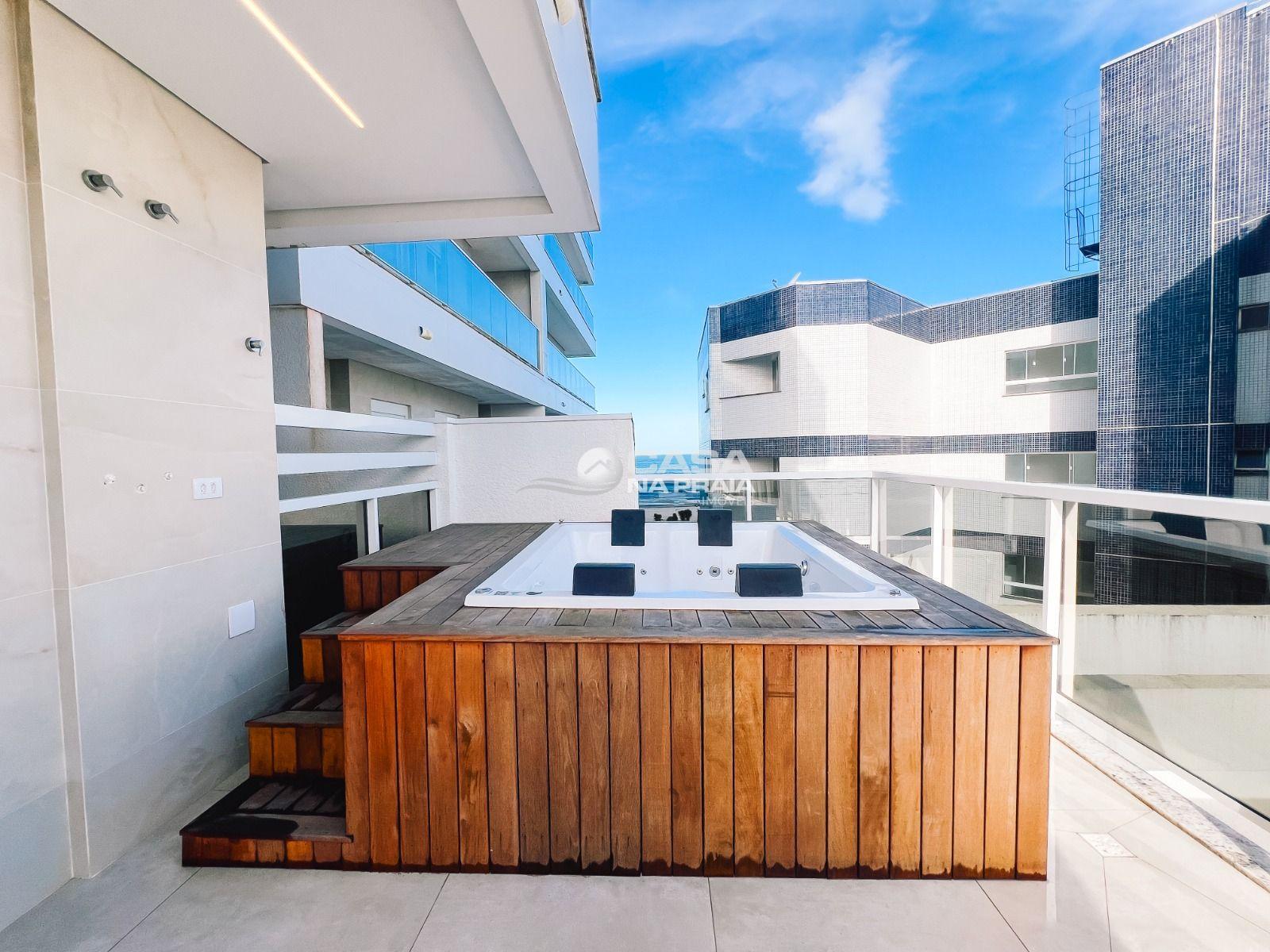 A espaçosa sacada/terraço proporciona momentos únicos de lazer, com churrasqueira e uma jacuzzi privativa para quatro pessoas. Para maior comodidade, o imóvel ainda inclui duas vagas de garagem.