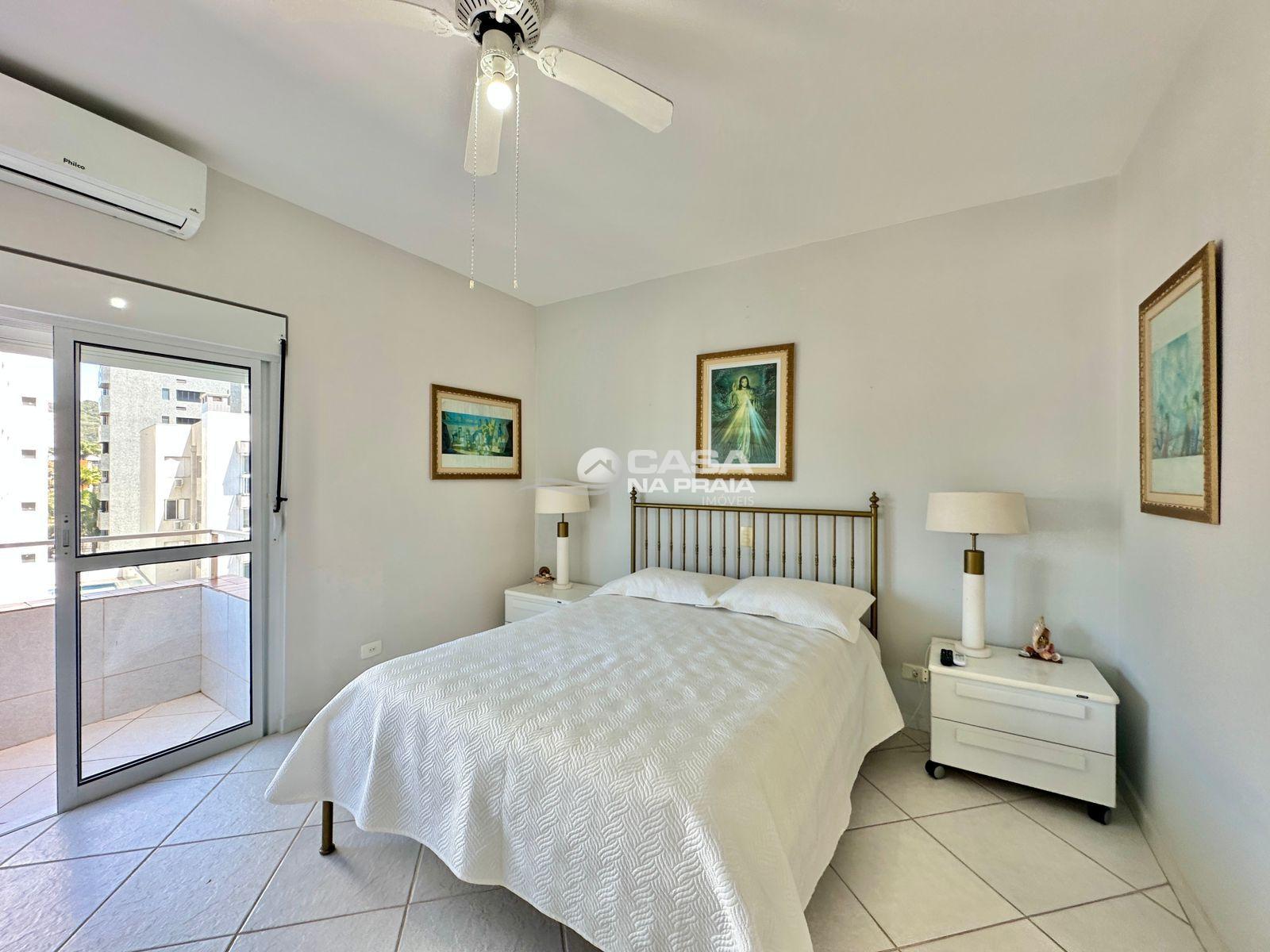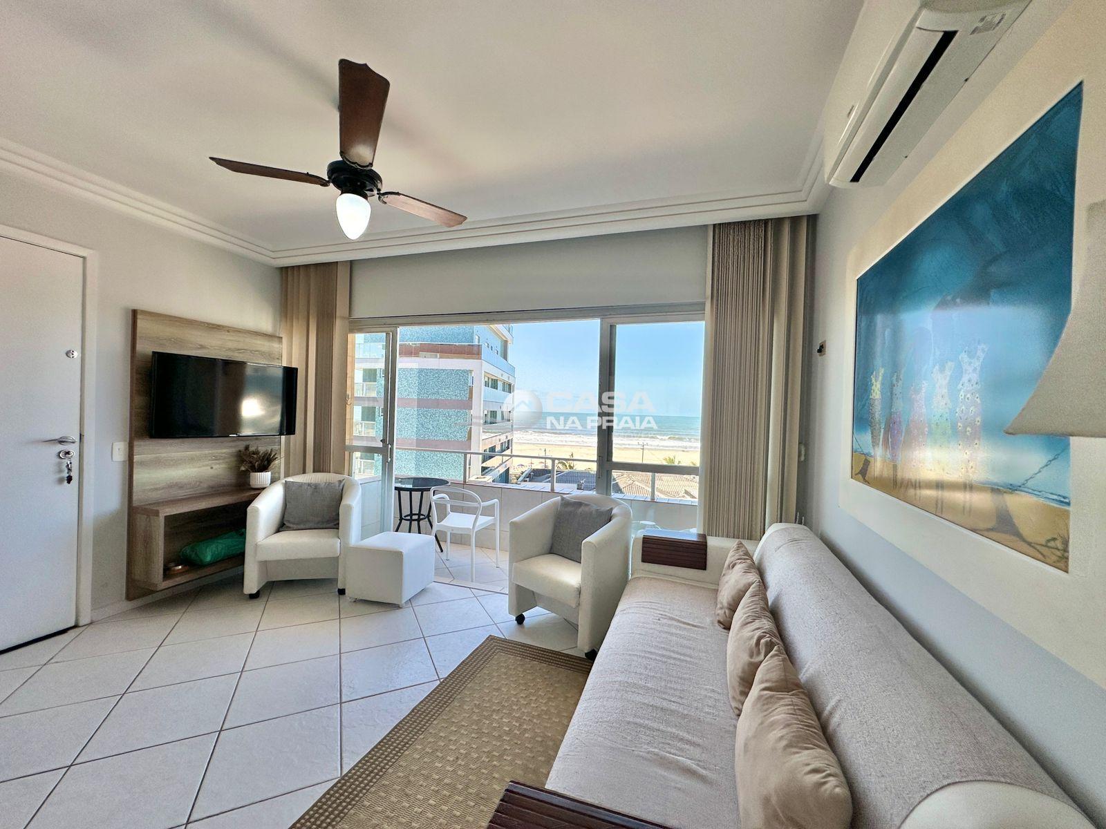 Possui 03 quartos (01 suíte), sala de estar e jantar integradas, sacada com vista para o mar, cozinha equipada, área de serviço e banheiro social. Conta ainda com Wi-Fi e 02 vagas de garagem.