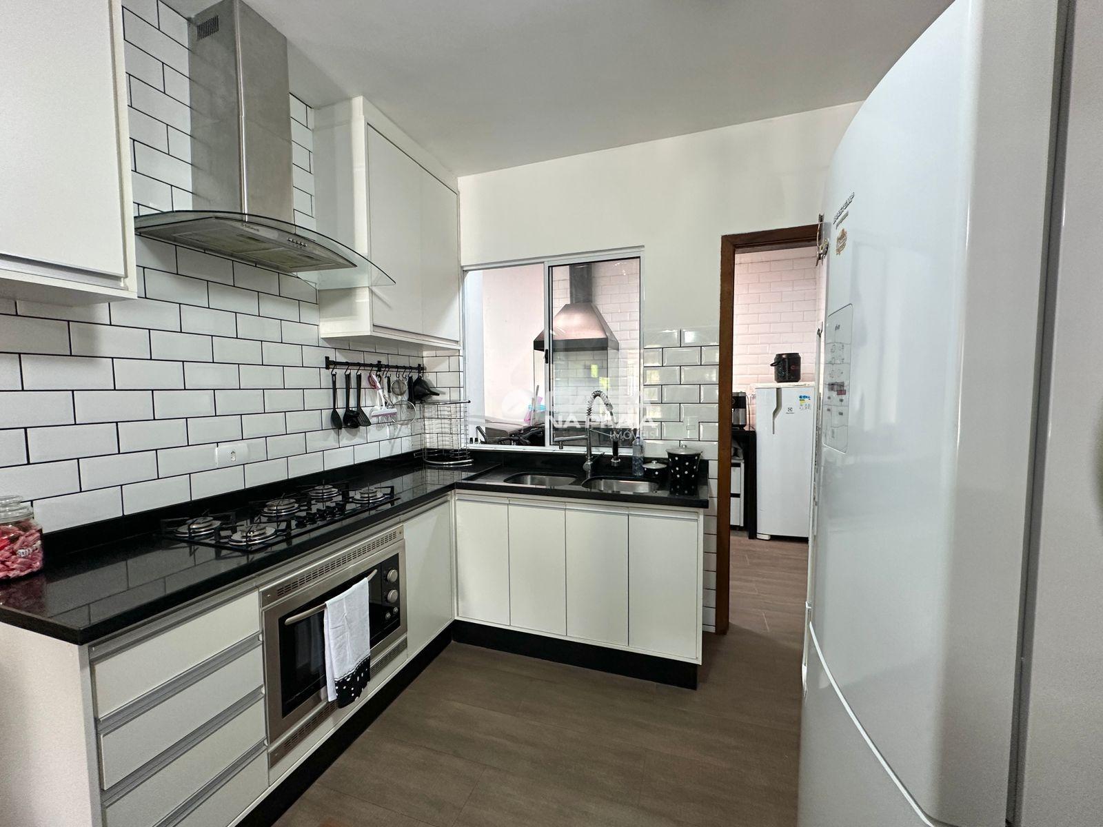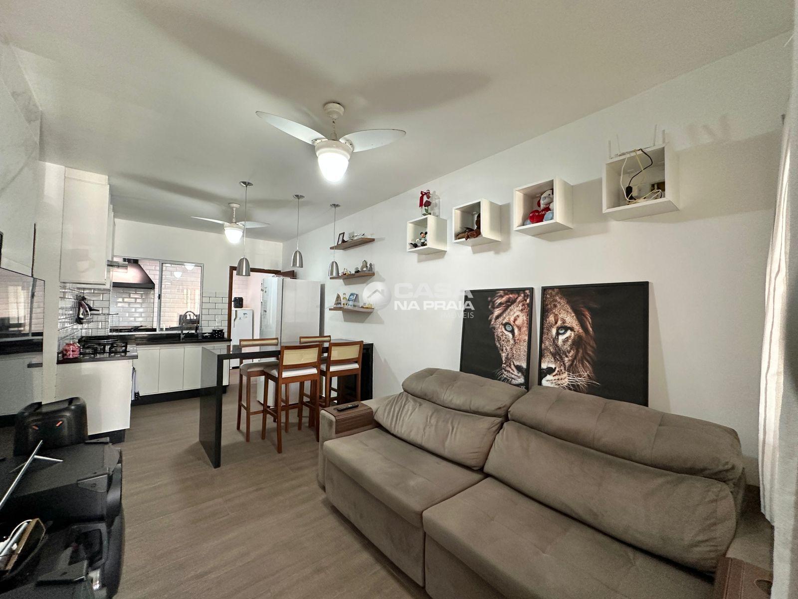 O imóvel conta com 02 quartos, banheiro social, sala de estar e jantar integradas à cozinha sob medida, área de serviço e espaço gourmet fechado. Possui ainda vaga de garagem coberta para 02 carros.