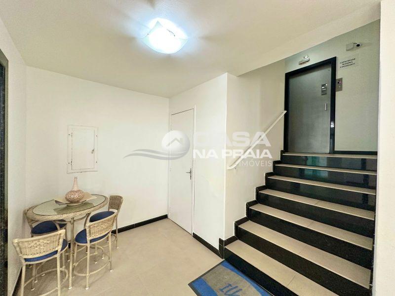 O condomínio oferece hall de entrada, elevador, interfone, zeladoria e chuveiro de praia, garantindo conforto e funcionalidade no dia a dia.
