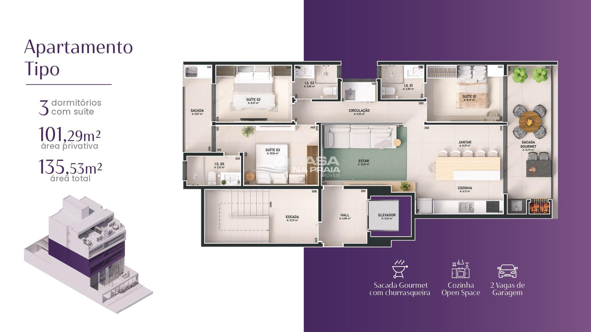 Apartamento Tipo – 101,29m² de área privativa